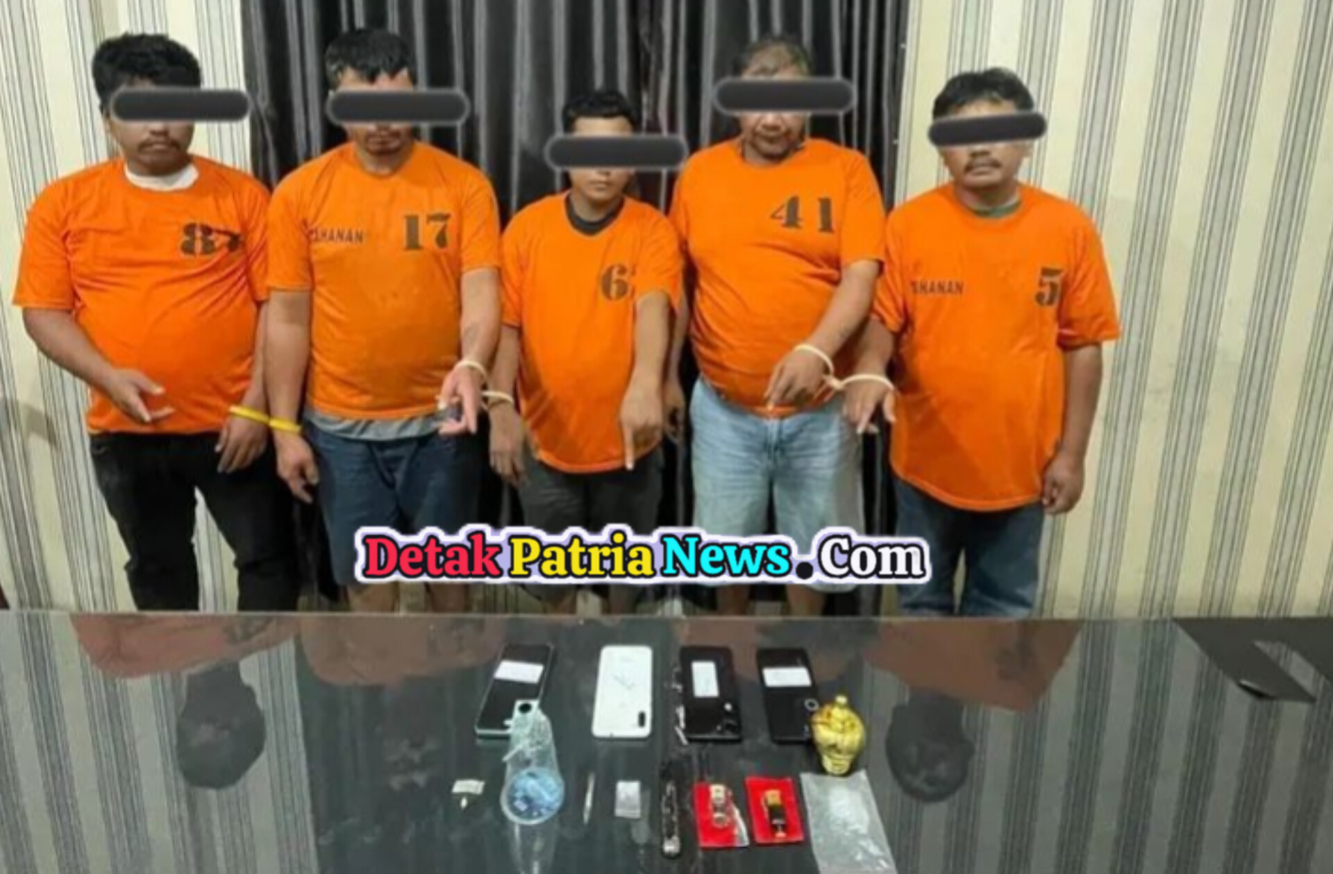 Kelima pria yang diamankan masing-masing berinisial IG (43), HP (44), HSS (34), IFP (35), dan TPP (25). Penangkapan pertama dilakukan di sebuah rumah yang berada di Jalan Rakoetta Brahmana Gang Manatan (TKP I). Dari lokasi tersebut, petugas kemudian melakukan pengembangan ke lokasi kedua di Gang Tengguli (TKP II).