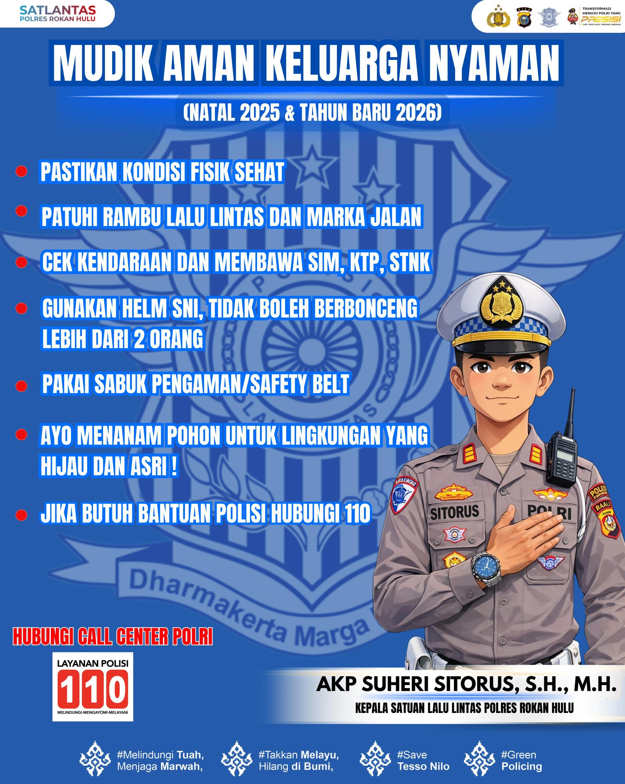 Rokan Hulu, DetakPatriaNews – Dalam rangka menghadapi arus mudik dan libur Natal 2025 dan Tahun Baru 2026 (Nataru), Kasat Lantas Polres Rokan Hulu AKP Suheri Sitorus, SH, MH mengimbau masyarakat agar selalu mengutamakan keselamatan selama berkendara.